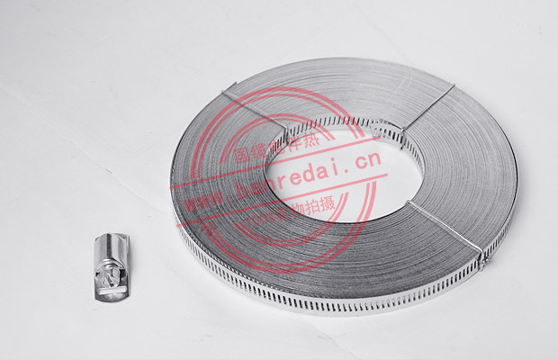 不銹鋼扎帶(俗稱卡喉)、卡扣由10mm寬1.0mm厚連續(xù)長度的不銹鋼帶以及固定螺絲所組成。它可以將接線盒等附件固定在管道上。鋼帶可根據(jù)管徑大小,按實(shí)際需要長度剪切。安裝時(shí),調(diào)節(jié)時(shí),調(diào)節(jié)固定螺絲,即能將接線盒或其它附件固定在管道上。訂貨時(shí),須提供緊固螺絲套數(shù)和所需鋼帶總長,每圈鋼帶長度是固定鋼管外壁周長的1.1倍。